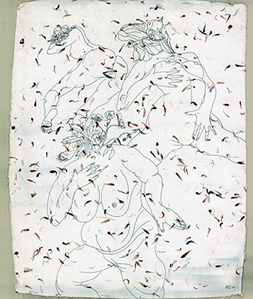 Kingdom of Flora No. 17, 2001 (Ink on Handmade Paper with Petals, 27" X 32")
