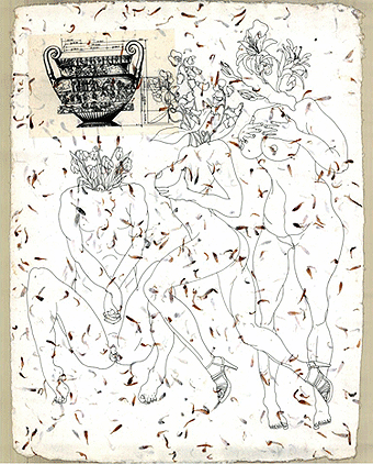 Kingdom of Flora No. 27, 2002 (Ink on Handmade Paper with Petals, 27" X 32")
