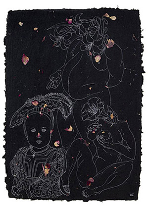 Kingdom of Flora No. 37, 2012 (Ink on Handmade Paper with Petals, 24" x 28")