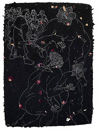 Kingdom of Flora No. 38, 2012 (Ink on Handmade Paper with Petals, 24" x 28")