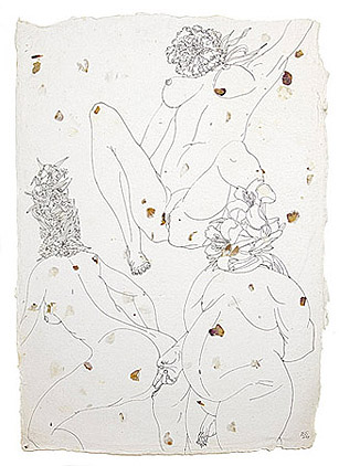 Kingdom of Flora No. 30, 2005 (Ink on Handmade Paper with Petals, 24" x 28")