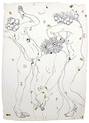 Kingdom of Flora No. 29, 2003 (Ink on Handmade Paper with Petals, 24" x 28")