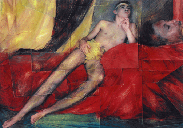 David and Goliath, 1998 (Diptych, each panel 38" x 60.5", Acrylic and Mixed Media on Canvas)