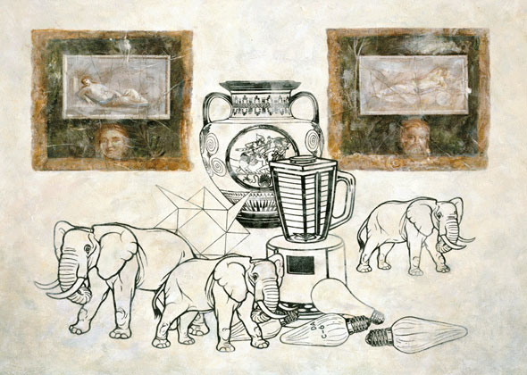 Elephants and Amphora, 2005 (Acrylic on Canvas, 22" x 28")