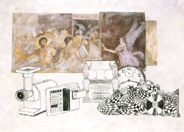 Clock, Nike and Discs, 2006 (Acrylic on Canvas, 22" x 28")
